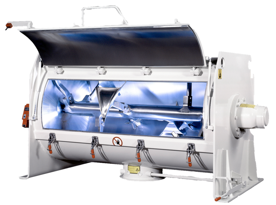 工藝原理——通過(guò)羅迪格攪拌元件的的機(jī)械作用使物料形成流化床并實(shí)現(xiàn)均勻混合